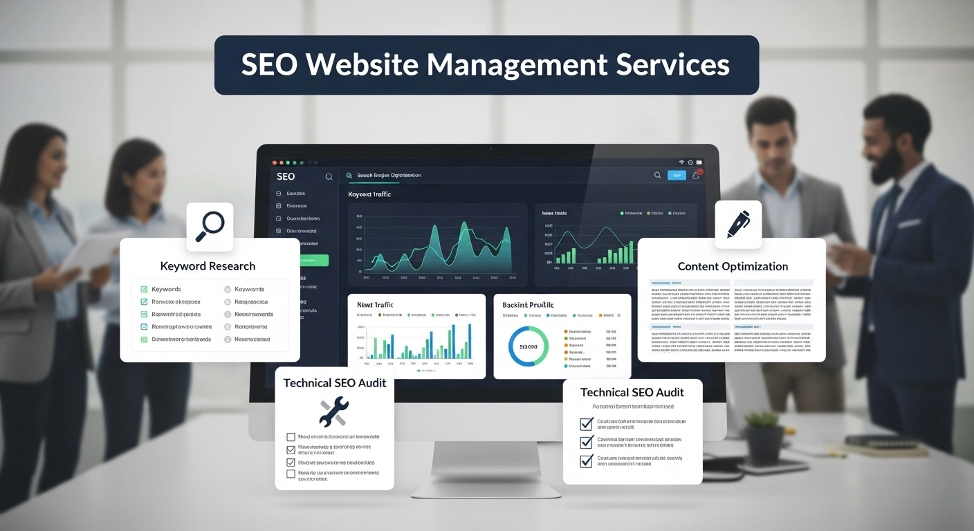 SEO website management services ensure your site continues to grow in search visibility, attract organic traffic, and stay competitive in your industry.